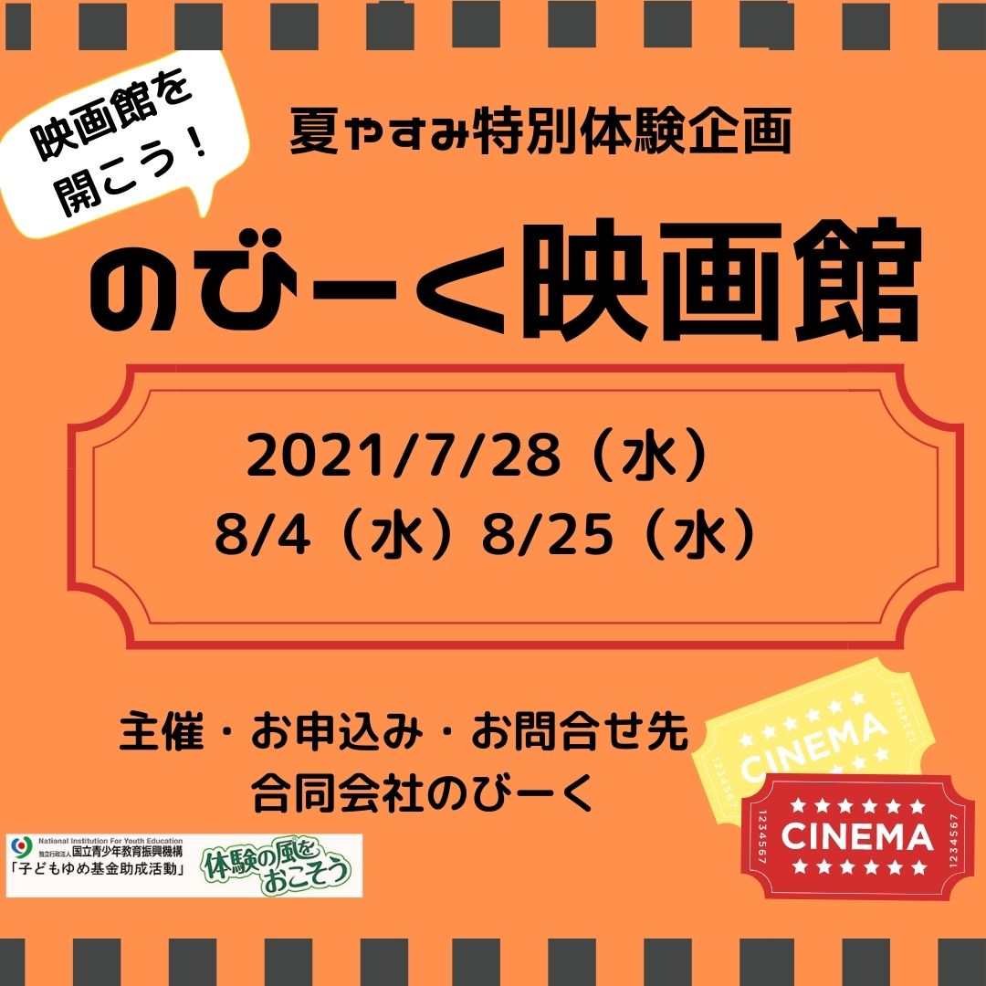 夏休み特別体験企画 【のびーく映画館】参加者募集!
